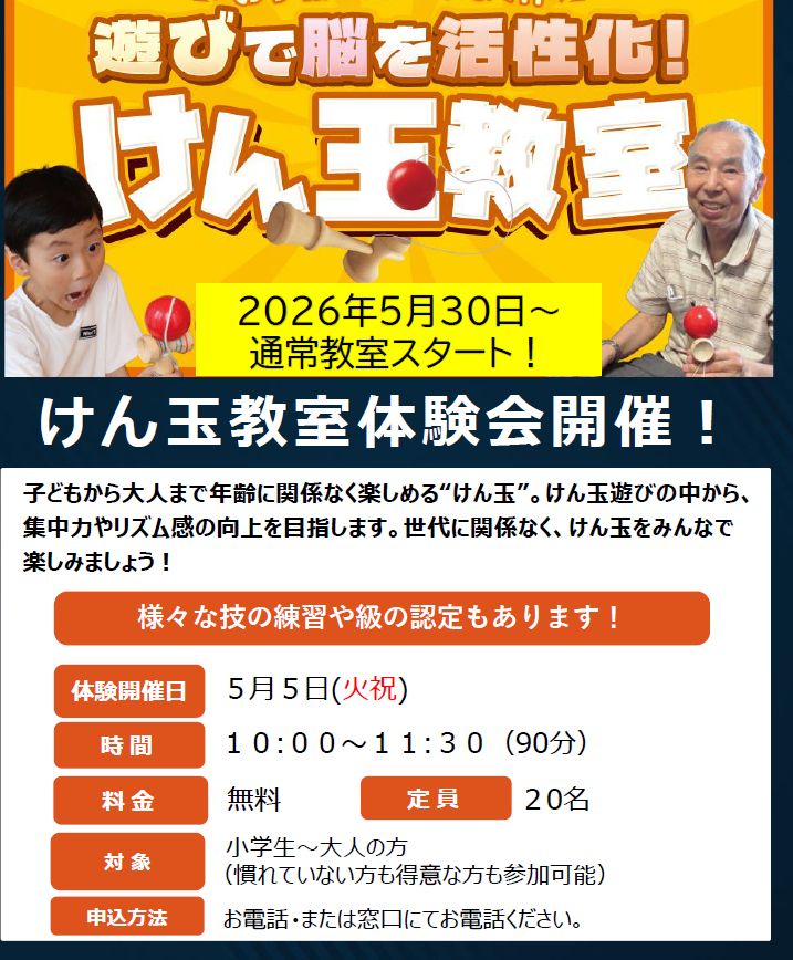 また、5月から通常教室を開催するけん玉教室も、この日無料でご体験可能です!